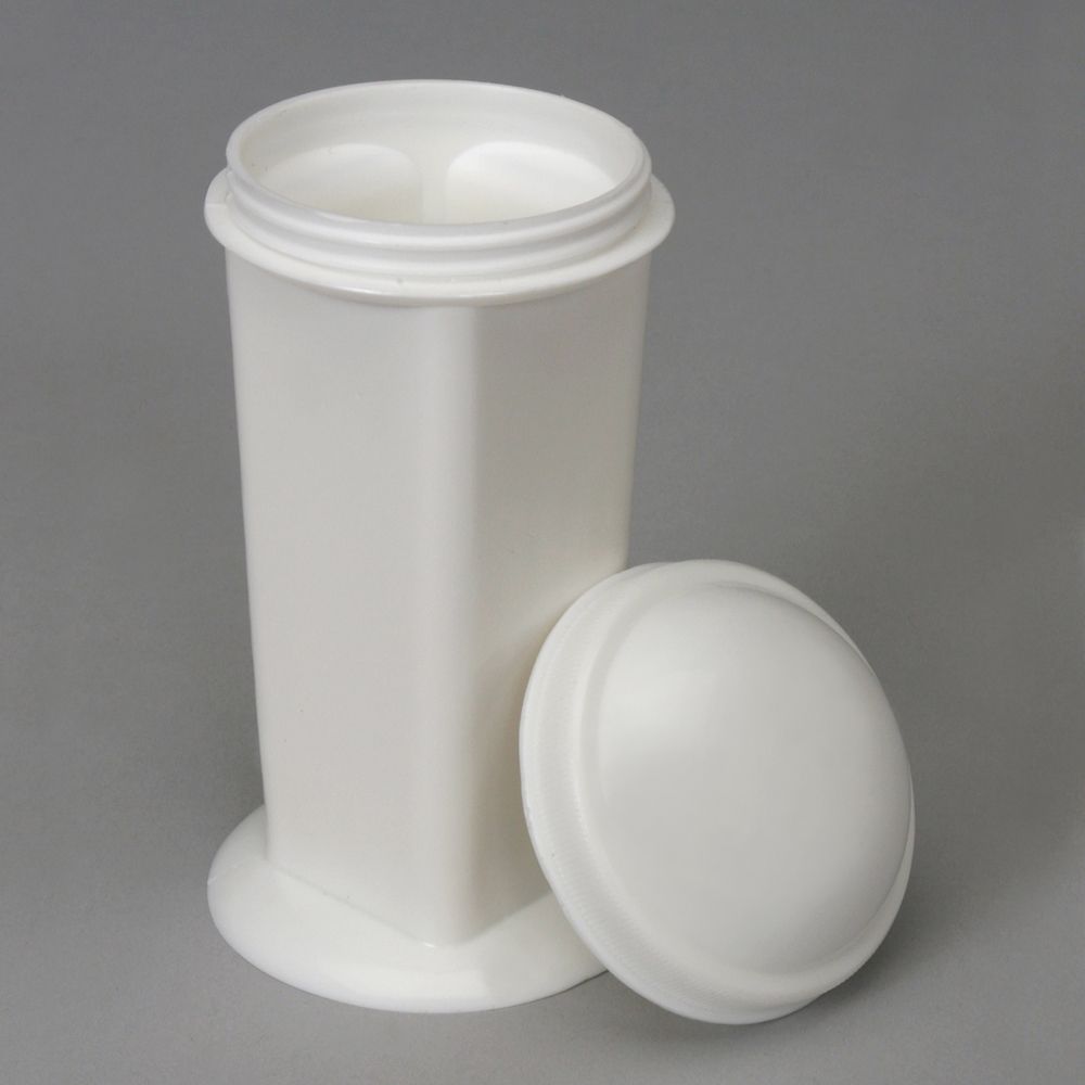Jar has domed, shallow-thread screw-cap. Holds up to 10 standard slides back-to-back. Autoclavable.